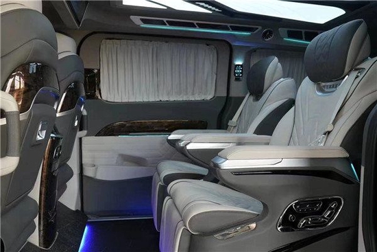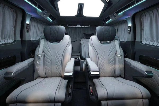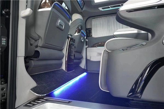 来到乘客舱,上门处的迎宾防滑踏板彰显档次,地板采用高密度耐磨材料,具备隔音性好、保温性好等特点,还可以隔绝轮胎行驶过程中产生的近80%的胎噪,使车内达到最佳的舒适环境。侧墙我们均采用GMT新型复合材料,具有消音、隔音的作用,环保无异味。为了增加整车氛围感,配有车身氛围灯条,搭配车顶独家开模的高达顶灯,三色可调可根据使用环境进行调节,顶部还配备了24寸的智能液晶显示屏,可以同步车辆的车速、时间。也可进行智能办公、上网追剧等,满足你行车空间的所有娱乐休闲需求。
