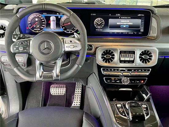 内饰更是极致的奢华,完全打破了大家对传统越野车的印象,大面积的顶级真皮覆盖,辅以木饰板和金属材质,无论是视觉还是触觉都非常的有档次感,层次非常丰富。平底式方向盘拥有舒适的握感,操作也十分便捷,双12.3寸的中控大屏展现出十足的科技感,还有经典的三把锁和万国表都没有缺席,依然在最显眼的位置。