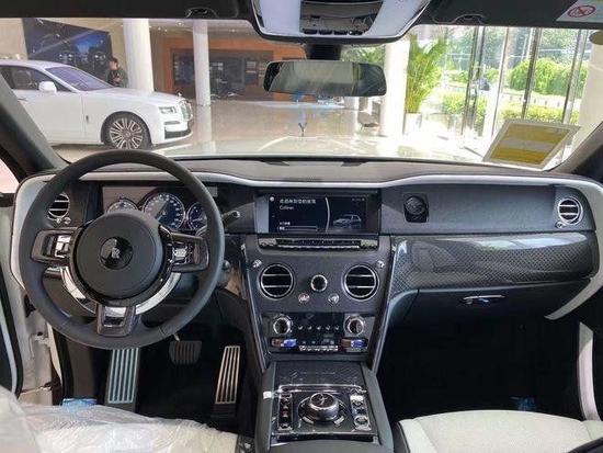 劳斯莱斯库里南三幅式设计的方向盘看上去尺寸不小,足够厚实。中间多功能控制区有实木点缀,以至于开着库里南也有一种生活的仪式感。内饰将劳斯莱斯的奢华与简洁对称的功能之美融为一体。中控面板的边框由手工打磨的金属条包裹,不仅将上部的仪表板和中部的控制台连接起来,更通过容纳仪表板上的横向设计元素,增加了掌控感。