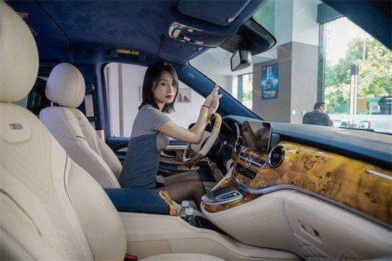 进入奔驰圣母峰的驾驶舱,奢华的感觉迎面而来。米白和藏蓝双拼色设计搭配雀眼枫木,显得非常有档次有质感。车载压缩机冰箱设计在中央扶手处,同时中央扶手箱前方有两个杯架,也是采用了真皮的一个包覆。
