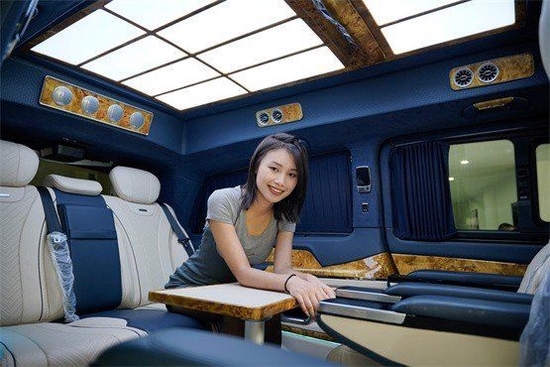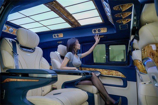 前脸造型参照凯旋门设计,全车定制了高顶扰流套件;圣殿星慕格栅立体感十足,255颗烫银电镀,阳光下闪耀瞩目。奔驰凯旋版高顶商务车机盖升降定制KD立标,将品牌价值完美融入设计理念,感受最极致的品牌力量。整个外观霸气十足,行驶在马路上,回头率爆棚。以最霸气的形象,彰显最大气的尊贵身份。