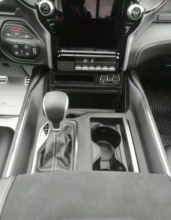 全新22款平行进口道奇霸王龙RAM在内部设计上还是延续了美式那种比较粗犷的风格,规整的中控台设计看上去比较死板,但丰富的配置会让你不由得为其称赞,中控台的设计简洁硬派,符合公羊的气质,仪表盘底边有花纹,则更加凸显了这款车的文雅性,软性材质的仪表台设计,摸上去手感非常舒服,并无些许生硬之处。