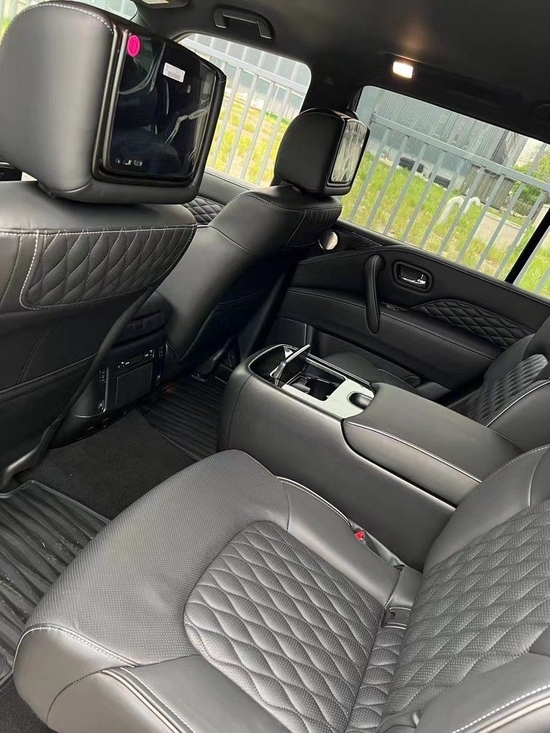 配置:ProActive顶配,5.6升V8发动机,400马力,413磅-英尺,单屏12.3英寸信息娱乐触摸屏,苹果CarPlay和安卓Auto,盲点警告(BSW),牵引能力-8500磅,全景,真皮方向盘加热,10向电动驾驶员座椅带记忆,8向电动乘客座椅,英菲尼迪智能钥匙,按钮点火照明,远程遥启,三区空调,前排座椅加热,Bose 音响,17扬声器,后排娱乐系统,7座,22轮配有全天候性能轮胎,自适应自动调平大灯前照明系统,智能流媒体后视镜,智能巡航控制(全速范围),车道偏离预防,镀铬格栅包围,带有黑色网眼和下部保险杠,深色镀铬后尾门饰件,深色镀铬侧通风口,第二排船长椅可翻转,第三排可轻松进入,第二排长条座椅60/40分割折叠,空气净化器,盲点侧撞干预,车道偏离预防,