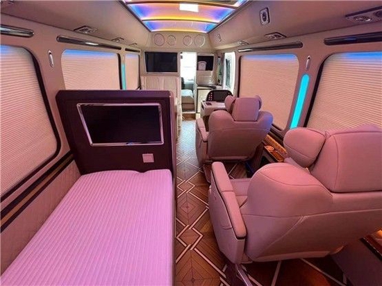 丰田考斯特7座改装商务车,除了座椅的改装以外,车内隔断的增加也是别有一番风味的,隔断的增加,将驾驶席和乘客席分开而设,同时我们可以在隔断上增加一些精美的装置,电子时钟,或者显示屏,方便又实用。隔断的效果最主要还是分离了司机和乘客,既能够给司机一个安静的驾驶环境,同样也为乘驾人员提供了更加静谧的乘车空间。丰田考斯特7座卫生间商务车国庆优惠8万