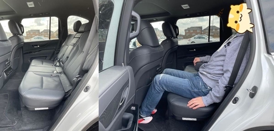 第二排的空间不大,但是第二排座椅可以给好评,座椅的材质比较柔软,靠背也能调到非常舒缓的角度,坐垫长度及高度都很合适,乘坐起来非常舒服。当然啦!新一代LX确实没有一些行政级轿车的后排座椅舒服,但是如果和一些全尺寸SUV相比的话,他的座椅还是很舒服的。不过以上结论只针对顶配以外的车型,因为顶配车型是个四座车,后排是两个可调节的座椅,座椅的结构及功能性也完全不一样。