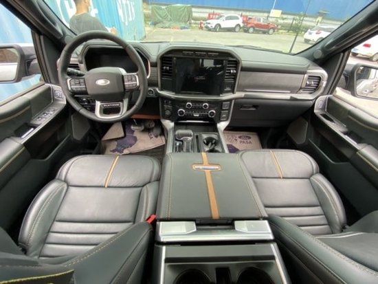 福特F150内饰采用独特的中控台和门饰板面漆和真皮包裹的方向盘,中控台部分辅以银色饰板装饰,六指针仪表盘的设计有些后工业时代的复古风格,采用带电冷热功能的可记忆式皮革座椅,头枕四向可调,搭配铝饰条和黑色钢琴烤漆内饰。
