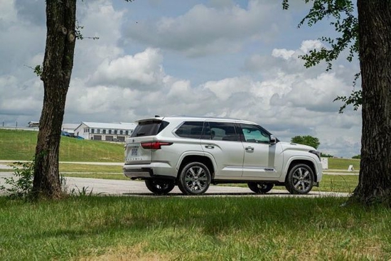 22款新款丰田红杉5700的“大”是相当惊人的,作为一款长度超过5米、宽度超过2米、轴距超过3米、高度接1.9米的全尺寸SUV即使是陆巡和大G (配置|询价)停在它面前,也只会看着像小弟,来到红杉的尾部,“大”的感觉仍然在继续,尾灯由4个大圆圈组成,后备箱门的尺寸也很大。