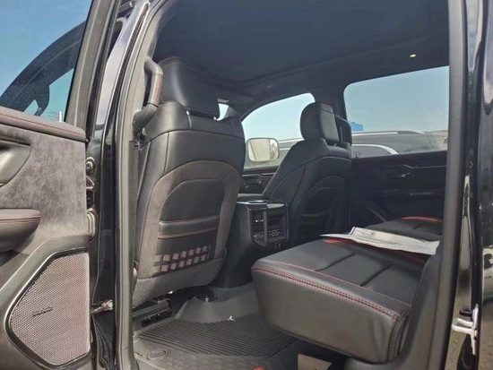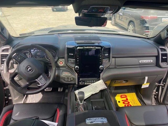 22款道奇公羊霸王龙内饰部分进一步强化了其高性能版本的形象,中控台和座椅随处可见的TRX标识便是最好的例证。同时,作为道奇家族的旗舰车型,新车还配备了12英寸竖置中控屏幕,除了支持蓝牙、导航和车载Wi-Fi等常见功能,还支持Apple CarPlay和Android Auto手机映射。