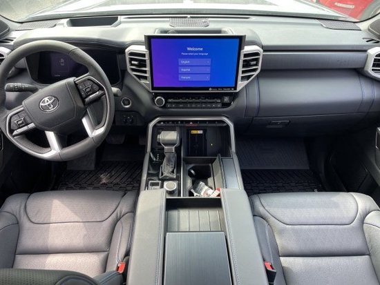 22款丰田坦途的内饰设计也采用了新设计风格,“硬”还是第一感受。无论是平直的线条还是灰白的用料配色,车内的风格都是非常偏向于越野,宽大的悬浮式液晶中控屏幕也是挺抢眼的,根据不同配置也将提供有8英寸以及14英寸的不同配置,就是这个感觉还是很像“大彩电”,只是放在这台车上会显得更协调一些,功能上也丰富了在线车联网以及CarPlay车机互联功能。
