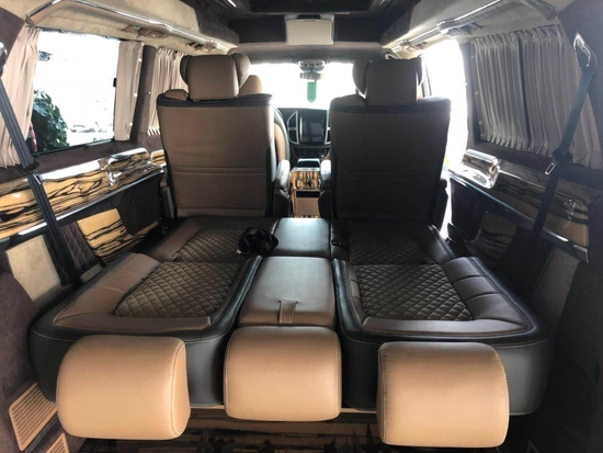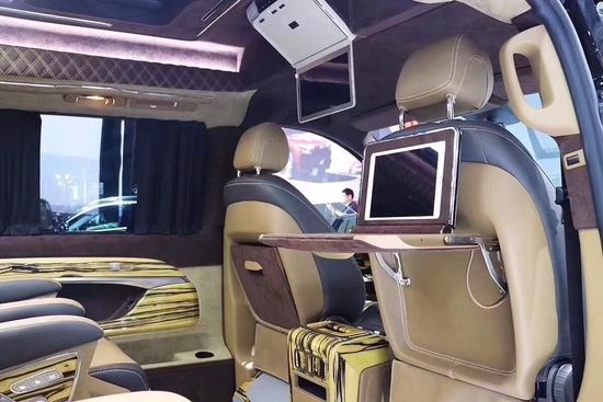 奔驰威霆内饰是前宾夕法尼亚首席华人设计师jaine设计,内饰从原来的商务7座改装成隐藏式6座商务车,中间隔断处增加两个独立的隐藏式秘书座椅,一键式电动收展。大大节省了内部的空间,使内部空间达到最大化。