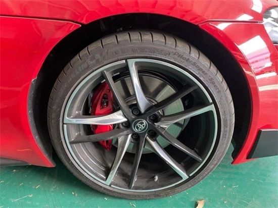 丰田牛魔王Supra由于该车采用的是双门硬顶Coupe设计语言,整个紧凑的姿态搭配饱满的轮廓十分显运动。丰田Supra的长宽高车身尺寸分别为4381/1867/1310mm,轴距达2470mm,最小离地间隙是115mm。