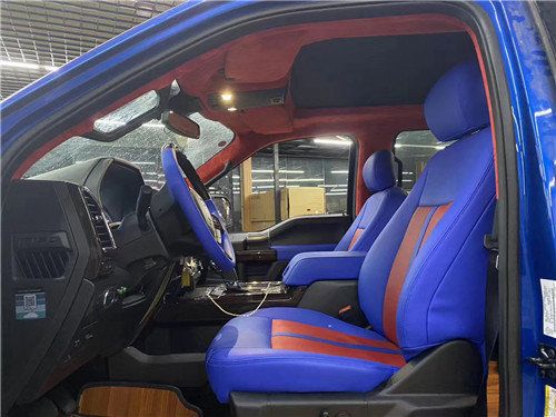 20款F150它的表面颇具动感,内饰奢华,配置富厚,同时兼具跑车的动力机能、越野车的全地形制霸本领和豪华轿车的乘坐恬静性,并且它的改装空间也很大。车内配备标准独特的皮革和布艺装饰的座椅,驾驶员侧的电动十向调节。