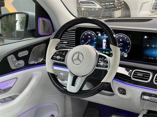 迈巴赫GLS600车尾厚重敦实和新一代GLS区别不大,两条横向镀铬装饰条与后杠下方双边共两出的排气设计,增加了车尾的层次感。氛围灯、名为“NO.8 mood”香氛系统和Burmester品牌高端3D环绕音响系统。