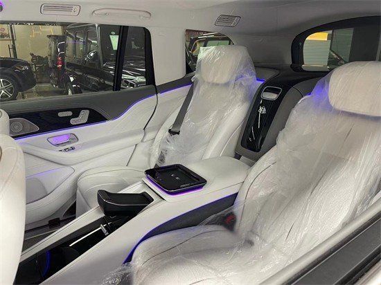 奔驰迈巴赫GLS600中央由冰箱、控制台、储物空间和手机无线充电台等进行贯穿,呈现出类似于迈巴赫S级一样的头等舱设计。借助电子扩展的踏板,进出变得更加容易,后排座椅可以倾斜以提供几乎像床一样的舒适度。但是,此功能需要付出第三行的代。