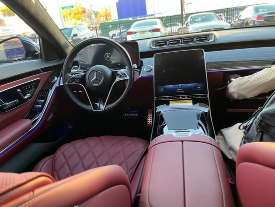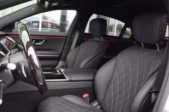 全新奔驰S500内饰,中控台垂瀑式中央触控屏从中控台纵向延伸,凸显出了简约的设计感。整个内饰的豪华感当然是无须质疑,触手可及之处几乎全用上了皮革包裹,配合带263个LED单元的动态氛围灯进一步升华了内饰氛围感。AMG Line的方向盘通过对造型的重新雕塑,变得更加立体。作为轿车领域舒适标杆,S级的座椅功能性毋庸置疑,前排除了常规的电动调节,座椅记忆、座椅加热、通风以外,甚至连方向盘、车门扶手、中央扶手箱、座椅头枕都带有加热功能。另外前排座椅还带有10种模式的热石按摩;侧翼还带有支撑气囊,能在过弯时提供侧向支撑。