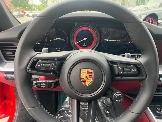 内饰方面,全新911gt3在911carrera的基础上,增加了大量的碳纤维和alcantara内饰,并在不同强度下,制作了包括各种补足材料和补充层。在新车的仪表板下方,还提供了一个巨大的储物空间。车内的各个按钮采用金属铣削铝制和复合材料制成,每个按钮的表面均有750个可选的缝线,为了确保每个旋转的按钮都保持如新的状态,保时捷的工程师还在方向盘后部配备了一个小的按钮。