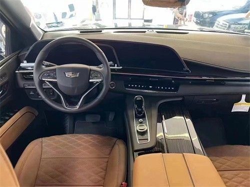 22款凯迪拉克全新凯雷德配备了科技含量极高的OLED曲面触控屏,采用了大屏套小屏的设计风格,屏幕总尺寸超过了38英寸。中控台上还采用了大量钢琴烤漆装饰板,下方配备了造型精致的电子挡杆,突出了车内的豪华氛围和强烈的科技感。在方向盘、座椅以及仪表等处突出性能元素。座椅布局方面,新车或将采用“2+2+3”的布局形式。