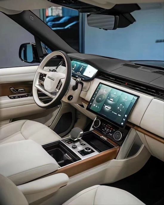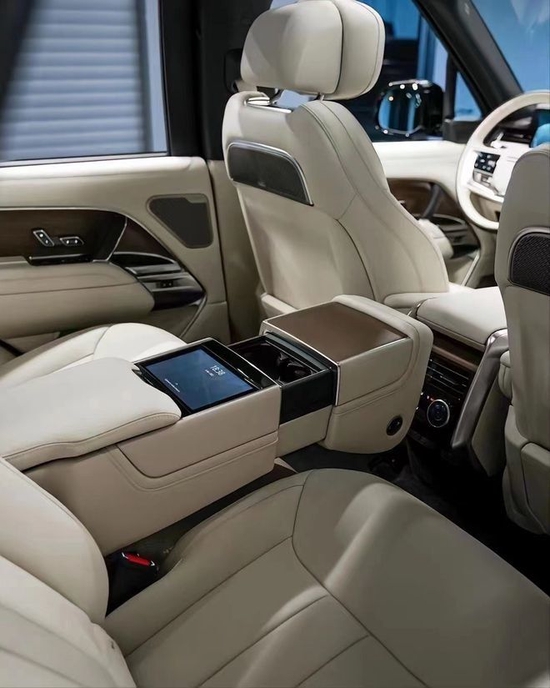 路虎揽胜行政车内强大的功能并非体现在众多按键上,高分辨率液晶屏提供了出众的整合方案,至于音频输出,可以选择用扬声器或是原厂带的蓝牙耳机收听。控制台顶端以及方向盘以牛津皮革包裹,无论是视觉效果还是质感都无与伦比。中央显示屏双画面技术可使驾驶者和乘客同时观看不同的画面。