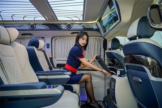 奔驰威霆作为一款商务车,5370mm*2028mm*2080mm的车身尺寸为其带来的非常舒适的空间享受,而随着人们对商务车舒适度要求的提升,原厂的威霆内部空间已经无法满足所有人的需求。