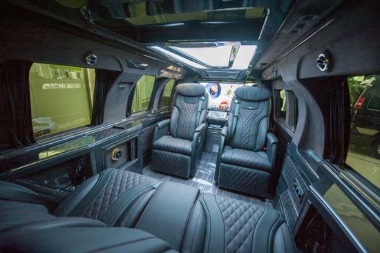 GMC商务车而打开车后门,呈现在眼前的便是一个大储物空间。进入前车舱,中国制式仪表盘、便捷式档位,以及桃木装修的中控台规划给人简洁而健康的感觉。桃木/真皮镶嵌方向盘、透气型奢华真皮航空椅、前置车载冰箱的选用,显示了奢华气息。