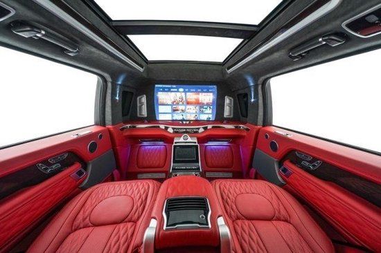 2022款路虎皇家一号加长配有做工非常考究的吧台,让您置身车内尽可享受舒适奢华的贵宾式待遇。全景天窗下,隔屏吧台搭载32寸液晶升降电视,MERIDIAN英国之宝环绕音响,秉承着高贵与简洁的设计宗旨,清晰重现各种声音,其品质可见出类拔萃。左右下方各9.7寸液晶显示功能屏,让视觉听觉与触控发挥到极致。