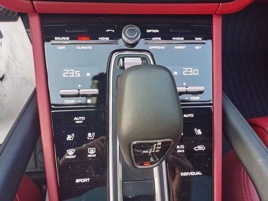 22款保时捷卡宴车内,经过重新设计的操控区域简约时尚,一体式操控台配合拉丝铝合金装点,让整个空间豪华感倍增。通过调节中控台上的按钮,选择将空气悬挂升到最高位置。