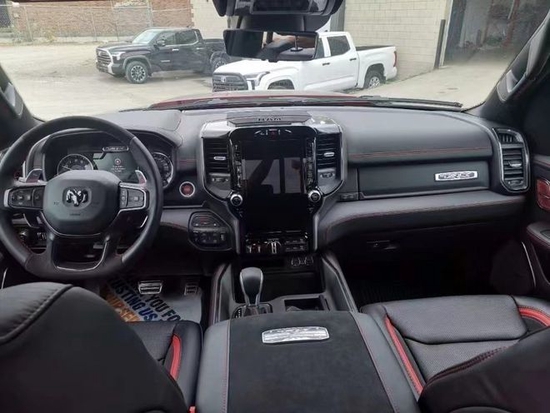 22款道奇霸王龙内饰部分进一步强化了其高性能版本的形象,中控台和座椅随处可见的TRX标识便是最好的例证。同时,作为道奇家族的旗舰车型,新车还配备了12英寸竖置中控屏幕,除了支持蓝牙、导航和车载Wi-Fi等常见功能,还支持AppleCarPlay和Android Auto手机映射。