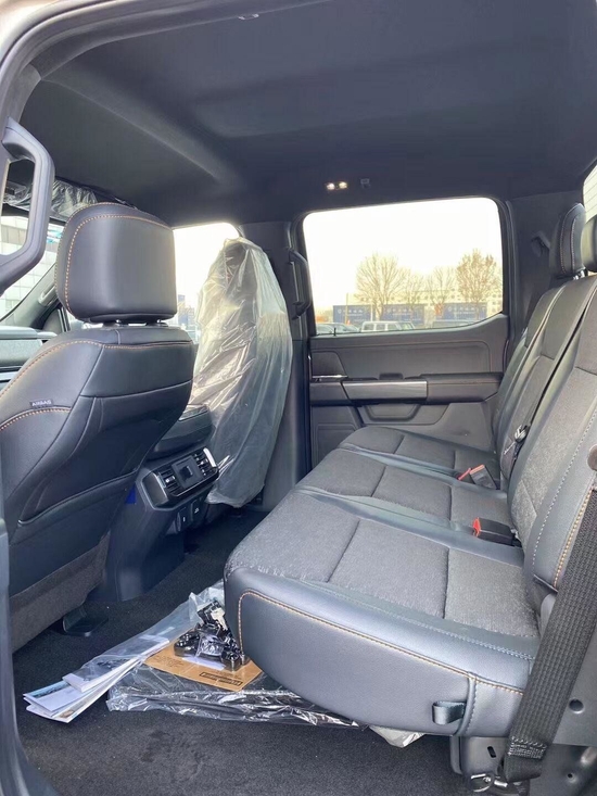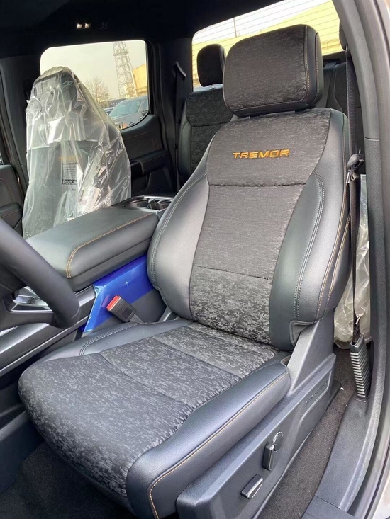 低端系列F-150 Tremor在深色布座椅衬垫上缝有橙色点缀,而高级系列则是橙色穿孔皮革。仪表板的的一角还有橙色的美国国旗,座椅靠背上有“Tremor”的徽标。Tremor版限定提供4门双排座的SuperCrew超级乘员车型,这也是F-150最受欢迎的版本。