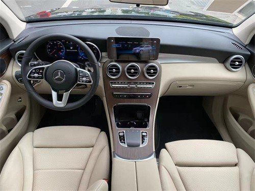 奔驰GLC (配置|询价)300内饰真皮包裹的多功能方向盘,按键布局清晰,方便了驾驶人员的操纵。下方的仪表盘内容显示清晰,方便驾驶员观察。右侧则是他的大屏刀导航,功能强大,最大程度地提高了驾驶便利,提升了驾驶乐趣。下方是他的圆形的空调出风口,再往下则是奔驰经典的“小鼠标”。中控采用棕木内饰,大幅度提升车内质感的同时,也进一步提高了汽车内饰的档次。对了,这款车还具有一键启动功能,使用也很方便。