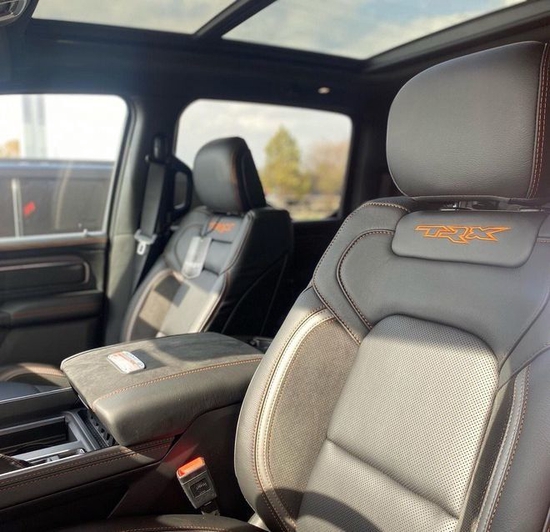 22款道奇霸王龙在内饰部分进一步强化了其高性能版本的形象,中控台和座椅随处可见的TRX标识便是最好的例证。同时,作为道奇家族的旗舰车型,新车还配备了12英寸竖置中控屏幕,除了支持蓝牙、导航和车载Wi-Fi等常见功能,还支持Apple CarPlay和Android Auto手机映射。