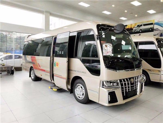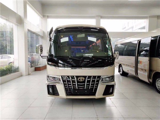 进口丰田考斯特,高级商务大巴,高端老总出行专用座驾,舒适的环境,稳定的性能,低调的气质,是商界的宠儿。优点有:可旋转真皮航空座椅、固定式真皮航空座椅、豪华办公桌、原装进口车载冰箱、加装冰箱外装饰、电动升降窗帘、车载无线传真机、轮毂罩、不锈钢杂物架、钛合金饮料架、秘书台、吸顶折叠电视、电脑视频音频系统、整车地毯、散件地毯、空气净化器、电动台阶、车身彩条等配置。