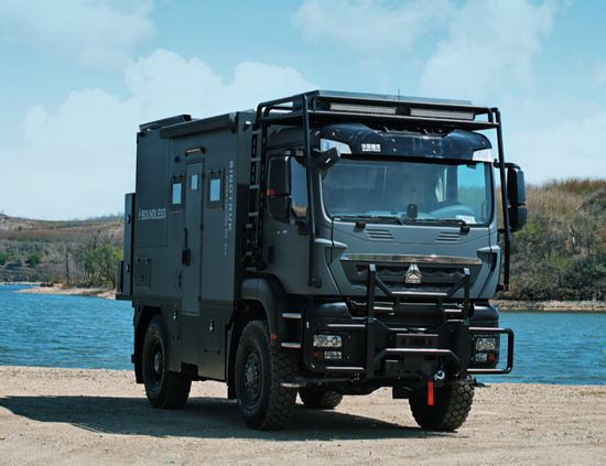 重汽曼恩房车交出的全新答卷——新重汽曼恩无疆-畅享款房车,重新定义重卡越野房车的极限!新车依旧基于重汽原厂豪沃TX底盘打造,作为中国重汽与德国曼恩长久合作的结晶,从技术到品控都保持了曼恩原厂的高标准;四驱,配有三把差速锁,并首创了尾硬拓展机构,刷新你对重卡越野房车的认知!