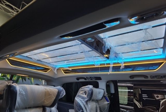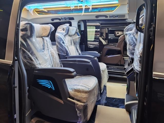 进口奔驰维特斯商务车后座三连排电动沙发座椅,向后拓展可一键平躺变身奢华大床,商务出行可作为休憩佳所;合家出游,便是小朋友的专属娱乐天地。按键也都安置在后排上轻轻一按加热和放倒,可以说是有钱人出行必备啊,舒适又气派!