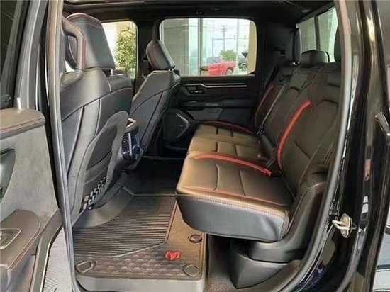 22款道奇霸王龙内饰部分进一步强化了其高性能版本的形象,中控台和座椅随处可见的TRX标识便是最好的例证。同时,作为道奇家族的旗舰车型,新车还配备了12英寸竖置中控屏幕,除了支持蓝牙、导航和车载Wi-Fi等常见功能,还支持AppleCarPlay和Android Auto手机映射。