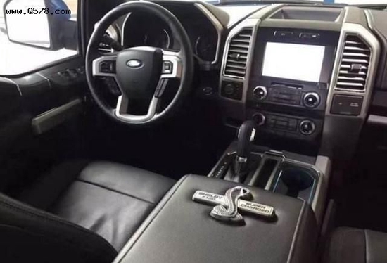 最新款平行进口F150shelby(谢尔比)内装方面,谢尔比在座椅靠背以及地垫上打上了自家标识,此外,还配备了金属踏板以及后窗私密玻璃。