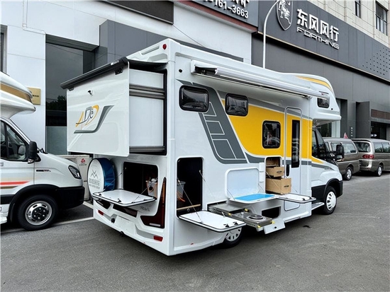 进口依维柯New Daily底盘的驾驶室体现的是精致和商务气息,尤其是戴德E途系列房车多以商务大气的稳重形象展示。新车搭载一款3.0T柴油涡轮增压发动机,匹配8AT变速箱,峰值扭矩430N·m,最大功率125kW。安全辅助系统方面,如胎压监测、防侧风系统、坡道辅助系统,自适应巡航,牵引力控制系统,自动大灯,自动雨刷器等等,可以说它的丰富程度在一些轿车上都少见,依维柯更多的是想让这款车底盘车型轿车化,以适应改装房车之后对应驾驶舒适性的考量。