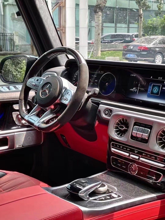 奔驰的内饰都会让你眼前一亮,当然了这也是奔驰的一个特色。所以这部全新的G63在内饰的表现上也是情理之中的,但是细节上还是有些小小的意外。这种感觉是打开车门的瞬间就能够感受到的。首先仪表和中控屏依旧是采用了同一款液晶屏显示。