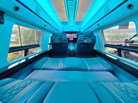 GMC商务车内饰方面:GMC商务之星较宽的车身设计使其可以容纳更加豪华的航空座椅,2395mm的高顶设计能保证任何人的乘坐空间感不会感到压抑。而且提供4种配色,作为商务车能提供这么多的颜色已经很不错了!但是白色和黑色是能见度最高的车型!