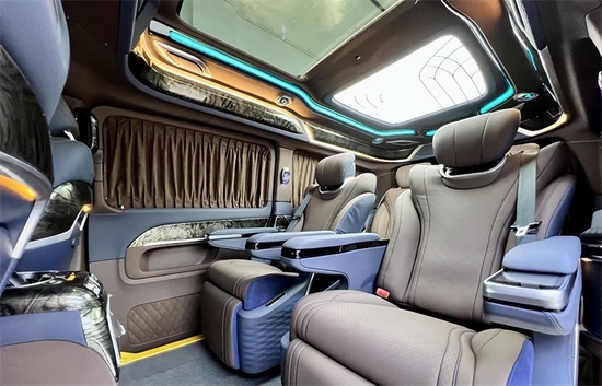 奔驰V级改装七座豪华商务车,在设计的档次感方面有非常大的进步,而且像一些细节之处的设计也向着轿车看齐,比如仪表盘、方向盘和多媒体系统等,这也让它逐渐脱离之前很像是一款商用车的印象。