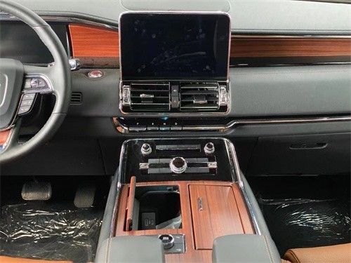林肯领航员的内饰非常奢华,多功能方向盘,中控台的造型与宽大的车身相呼应,新车全部真皮包裹座椅,内饰采用桃木搭配设计,高贵典雅,加高加大的车身除了增加内部空间外,还给人营造一种尊贵典雅的感觉。最新林肯领航员新车采用了2+2+3的座椅布局,第二排采用了两个独立座椅,座椅内侧均配有扶手,舒适度超强。
