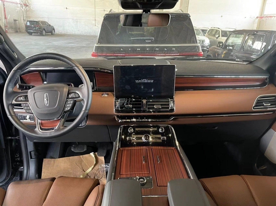 全液晶的仪表盘,悬浮式显示屏,科技感十足。林肯领航员的内饰非常奢华,多功能方向盘,中控台的造型与宽大的车身相呼应,新车全部真皮包裹座椅,内饰采用桃木搭配设计,高贵典雅