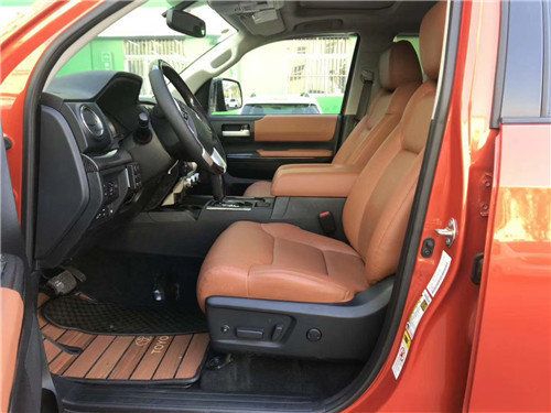 中控区被银灰色的面板划分为驾驶区与乘坐区,在宽大的车身内排挡杆更为接驾驶员更便于操作。坦途内饰简洁大方依旧突出了实用特点,室内色彩的精致搭配,平行进口车坦途皮卡肌肉感的设计同样延续到内饰的设计中,在内部设计上,座椅全部采用真皮制作,方向盘和档把为桃木制作。