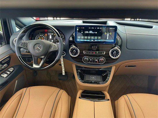 包括车内隔热隔音的处理,车内颜色的搭配,以及包覆的内壁空间和高光泽钢琴漆面板的整体精致,无不彰显车内设计的顺畅与华丽。奔驰威霆平顶7座商务车功能强大,既可旅游享受自然,又可作为家庭、明星保姆车。