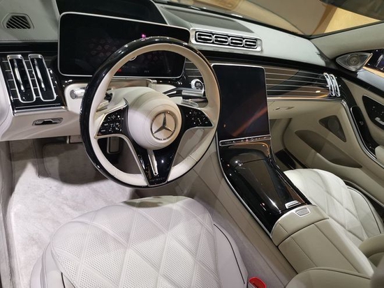 2022款奔驰迈巴赫S (配置|询价)480 4MATIC内饰方面:全新迈巴赫S580的内饰走的是科技路线,新车采用了三幅式的全新造型的方向盘,新车的中控台上采用了钢琴烤漆面板装饰,上面采用了多条横向的白色装饰条点缀。全新迈巴赫S 580采用了悬浮式的纵置大屏,液晶仪表采用了悬浮式的风格