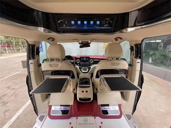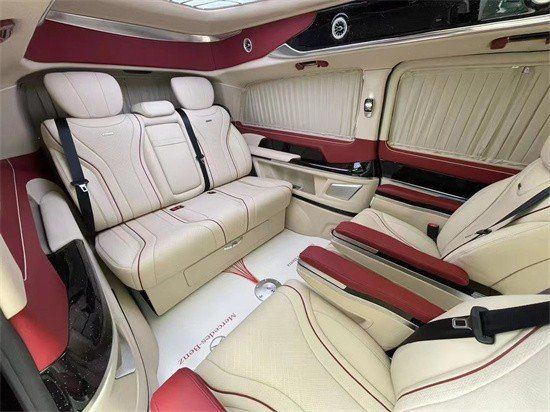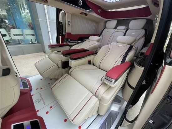 奔驰V250改装商务车2+2+3座椅,也是商务车最为流行的座椅布局,第二排航空座椅,打孔真皮处置更透气,座椅透风、推拿赐与您更温馨的乘坐感触,更有360度扭转功用,无论是家庭出游照顾孩子、陪家人谈天,亦或是商务洽谈,都能让您随心所欲,第三排座椅打开,便可构成一张宽大温馨的沙发床,方便乘车人员休息。