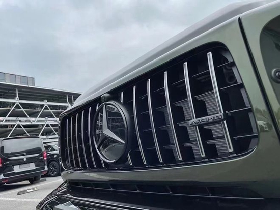 图中所展示的这款车就是限量版的哑光配色“奔驰G63”。大体的轮廓上这部车已经没有太多可以改变的地方了,整部车和以往一样依旧是一副“硬汉”的形象。正面上直瀑式的进气格栅很有力量感,值得一提的是这部车的前包围进行了加强处理,让本就非常硬朗的外观又多了份霸气感!环装的炮眼式前大灯依旧是这部车最亮眼的地方,点亮的瞬间更是彻底被征服。中网的奔驰LOGO显得格外的光彩夺目。AMG