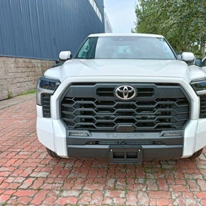 22款丰田坦途采用了全新的设计风格,最具辨识度的莫过于前脸这块非常大的进气中网设计,通过亚光银的饰条搭配黑色蜂窝网状的造型使得视觉上整个中网的面积似乎从车标一直拉通到前保险杠的位置上,第一感觉无疑是非常野性的。