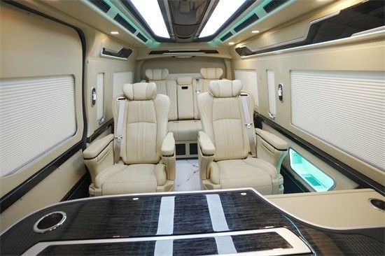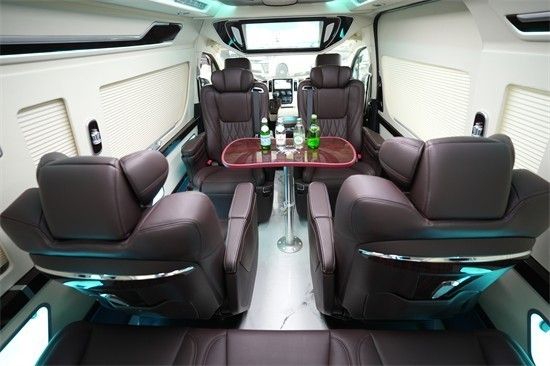 丰田海狮9座商务车采用2+2+2+3四排九座的设计,第二排和第三排均配备了两个Ottoman航空座椅,比埃尔法 (配置|询价)要两张,第三排放一张三人座的沙发床,即宽敞又实用,这样的情况下后备箱还能垂直放下四套高尔夫球装备!