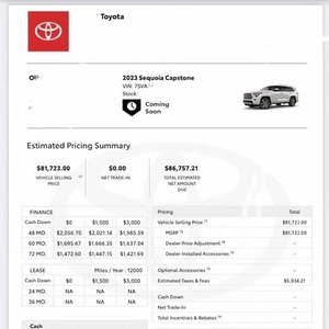 在配置方面,全新丰田红杉总共推出了5款车型,分别是SR5、Limited、Platinum、TRD Pro和Capstone,全系都标配了丰田Safety Sense 2.5技术套件、前排座椅加热、全景天窗以及360度全景摄像系统等配置。不过入门版SR5上配备的是8英寸中控屏,其余车型都采用了更大的14英寸中控屏;此外Limited车型上还增加了前排座椅通风、方向盘加热以及二、三排遮阳棚等功能;而Platinum车型在此基础上,还配备了第二排座椅加热和通风、14扬声器的立体声音响、HUD抬头显示系统以及雨量感应雨刷等配置。