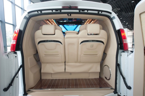 GMC商务之星除了后备箱提供储物空间外,第三排还能完全放倒,全家出行时完全足够用。